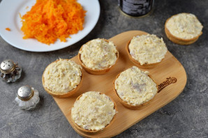 Наполните тарталетки, разровняйте верх тыльной стороной чайной ложки.