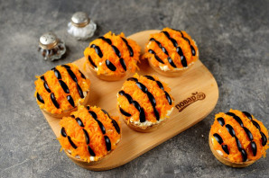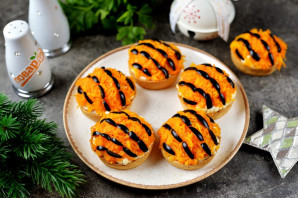 Хрустящая тарталетка с вкусной и сытной начинкой в виде тигрят не оставит равнодушным никого за праздничным столом. Готовится закуска очень просто и достаточно быстро, при этом долго сохраняет внешний вид, а тарталетки не размокают и хорошо держат форму Подавайте закуску к столу.