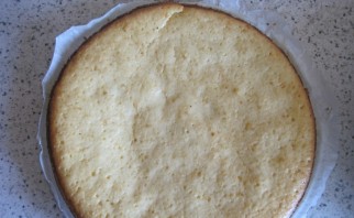 Корж следует остудить и разрезать пополам (на 2 коржа).