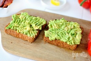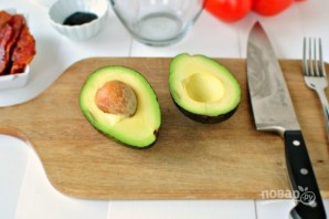 1. Подготовьте авокадо. Почистите, разделите пополам, удалите косточку, а потом измельчите мякоть вилкой. Добавьте сок лимона, чтобы мякоть не потемнела.
