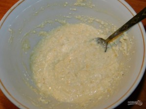 Добавьте размятый банан и манку. Все хорошо взбейте. Дайте постоять творожной массе минут 10-15, чтобы манка немного набухла.