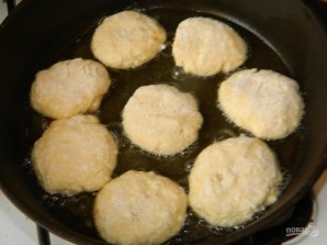 Ложкой выложите немного теста в муку и обваляйте. Выкладывайте творожники на горячую сковороду и обжаривайте с двух сторон.