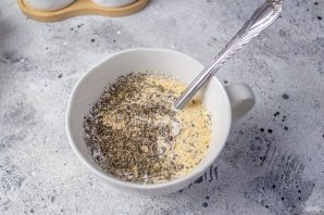 Смешайте сливки, сушеный чеснок и прованские травы, добавьте соль и черный молотый перец. Перемешайте.