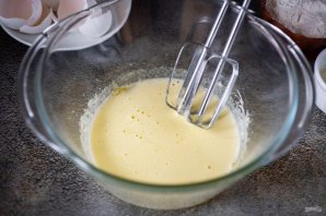 Миксером взбивайте желтки с сахаром до посветления смеси.