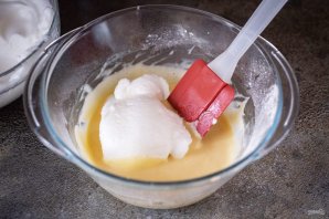 Взбитые белки добавляйте небольшими частями в тесто, полностью вмешивая их по ходу добавления.