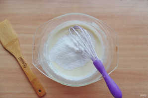 В полученную смесь насыпьте просеянную муку с крахмалом.