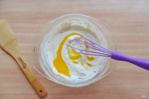 Перемешайте до однородной консистенции и по одному добавьте желтки.