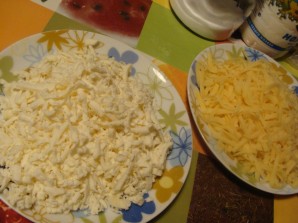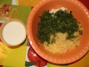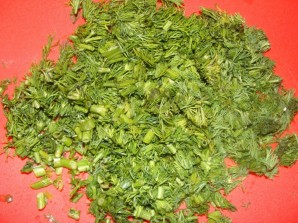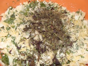 Яйца отварите, порежьте мелко и соедините с зеленью и сыром.