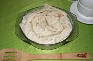 Прежде чем укладывать лаваш в форму, смажьте ее маслом, чтоб лаваш не прилип.