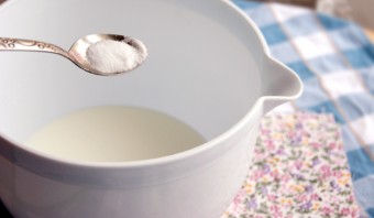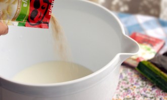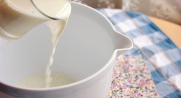 Влейте в глубокую емкость теплое молоко.