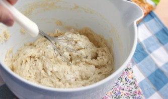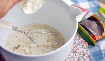 Перемешиваем и засыпаем просеянную муку.