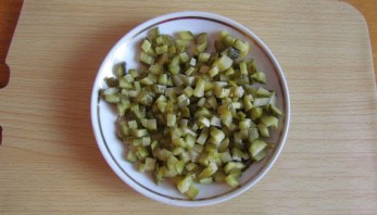 Finely chop the pickled cucumbers. The finer they are chopped, the more delicious our longevity drink will be. Rinse the dill and chop it finely.