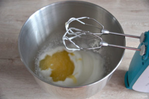 Whip the egg white into a fluffy foam, then add the chilled fruit puree with pectin, and whip until fluffy.