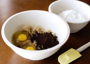 1. Beat the eggs with sugar and cocoa powder.