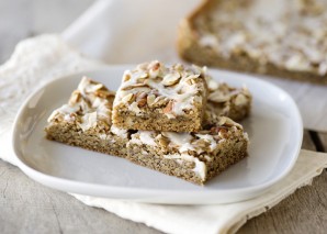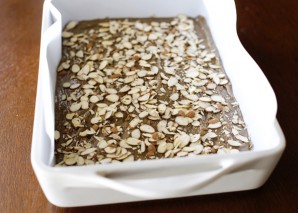 2. Add room-temperature butter, kefir, and baking powder. Then gradually add flour, stirring constantly to avoid lumps. Pour the mixture into a baking dish and sprinkle with almond flakes.