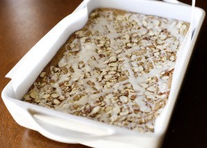 3. Bake for about half an hour. The biscuit should be slightly moist, but not raw. Let it cool and then pour condensed milk over it.