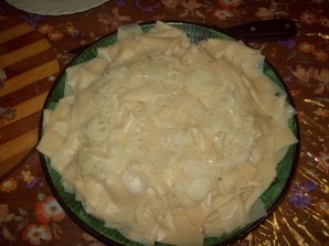 The dish is prepared without unnecessary complications. It can't be said that this dish belongs exclusively to Tatar national cuisine, as it is also widely spread among the Bashkir, Kazakh, Kyrgyz, and many other peoples. Overall, the cooking technique is similar everywhere, but each country has its own unique features. Today, I want to tell you how to make Tatar-style beshbarmak. The main peculiarity of this dish is that it should definitely be eaten with hands, as its name literally translates as "five fingers." In the Tatar version of the dish, potatoes are a must, although personally, I often cook it without them, as even in that form the dish turns out very filling. Otherwise, there's nothing complicated about it, and you'll easily manage to prepare it. To help you, I'm offering my photo-illustrated recipe for Tatar-style beshbarmak. The ready dish can now be served.