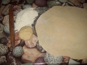 Then divide the dough into several parts, take one and roll it out into a thin sheet 2-3 mm thick.