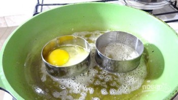 Now you need to make 8 separate fried eggs. A small detachable pan works best for this. Fry them in fat.