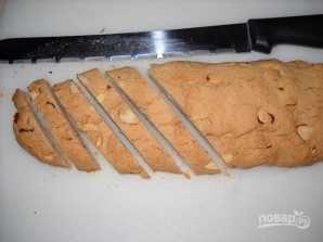 6. Нарежьте готовые батоны под углом ломтиками толщиной около 2 см.