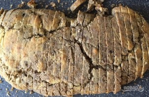8. Разрежьте батон ломтиками толщиной по 1 см.