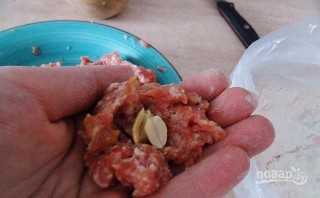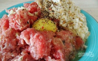 First, you need to prepare the stuffing. To do this, break the bread into pieces and soak them in 150 ml of milk. Then squeeze the bread and put it into a bowl. Add the meat mince, a chicken egg, salt, and your favorite spices to taste. Mix everything thoroughly.