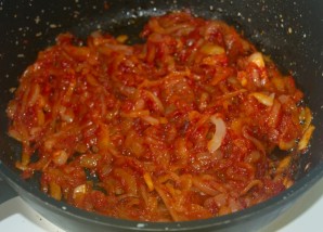 Place it on a frying pan with clarified butter and fry until translucent. Then add a tablespoon of tomato paste to the onion, mix well and fry for another 3-4 minutes.