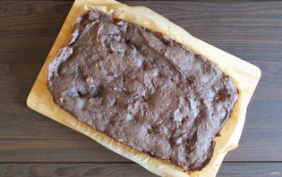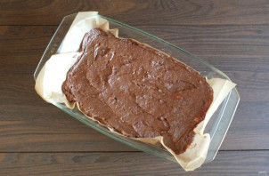 Прямоугольную форму для выпечки застелите пекарской бумагой. Выложите тесто и разровняйте. Поставьте выпекаться в разогретую до 170 градусов духовку на 15-18 минут. Учитывайте особенности своей духовки.