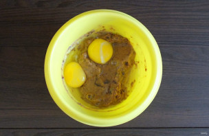 В полученную массу добавьте яйца. Взбейте миксером.