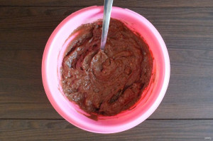 Перемешайте тесто ложкой. Оно должно получиться лёгким.