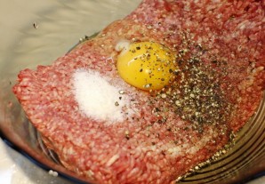 First, we need to season the meat mixture. For this, we break one egg into it, add salt and spices. I usually use only ground black pepper or a pepper mix. Mix everything thoroughly and set the meat mixture aside for now.