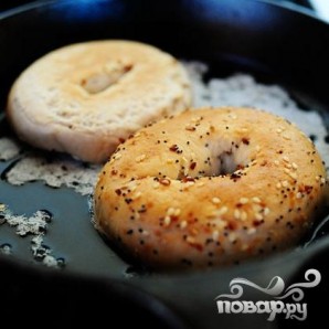 1. Помидоры нарезать дольками. Нарезать авокадо. Разрезать бублики пополам. Растопить сливочное масло в сковороде на среднем огне и обжарить обе половинки бубликов до золотисто-коричневого цвета и слегка хрустящей корочки. Отставить в сторону.