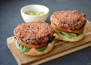 Накройте верхней частью булочки, прижмите её для прочности. Быстрые бургеры готовы.