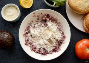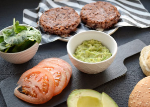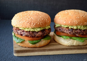 Осторожно положите сверху котлеты, а на них пюре из авокадо.