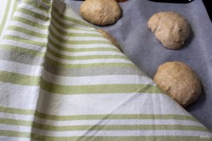 Затем разделите тесто на 8-10 шариков. Выложите заготовки на противень, выстеленный пергаментом, накройте полотенцем и оставьте минут на 20, чтобы они "подошли".