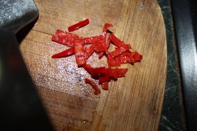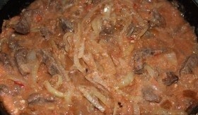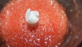 While the meat is frying, scald the tomatoes with boiling water and remove their skins. Then blend the flesh in a blender.