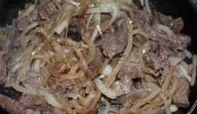 Fry the meat for about 10 minutes, stirring. Add salt to taste.