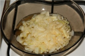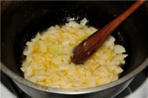 Dice the onion and sauté it in oil until soft.