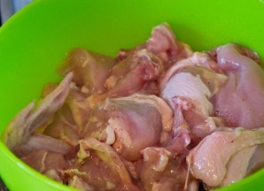 Cut the chicken meat into small pieces. Instead of a whole chicken, you can use chicken fillet. Salt and pepper to taste.
