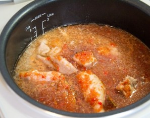 Pour the resulting sauce over the meat, switch to the simmering mode and cook for 45 minutes.