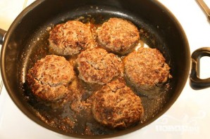 5. Выложить котлеты в сковородку. Жарить 3 минуты, а затем перевернуть.