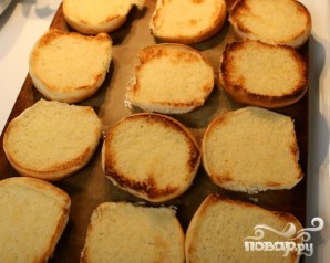 7. Слегка поджарить булочки для гамбургеров и смазать сливочным маслом.
