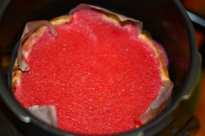 Клубничную массу выливаем сверху на чизкей.