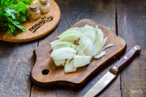 Peel the onion, rinse and dry. Slice the onion into half-rings.
