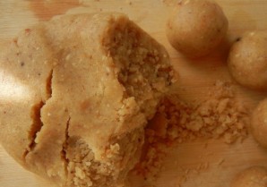 Sprinkle in the flour and mix everything thoroughly. Roll the prepared dough into small balls (3-5 cm). Grease the baking sheet with vegetable oil and place the balls on it. Bake in the oven for 25 minutes.