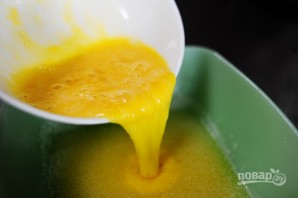 2. В отдельной емкости растопите сливочное масло. Добавьте в остывшее масло яйца и взбейте смесь.