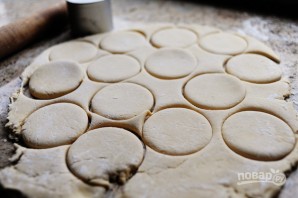 5. Раскатайте тесто и вырежьте с помощью стакана небольшие кружочки.