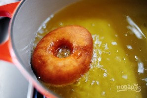 7. В кипящем растительном масле обжарьте пончики до золотистости.