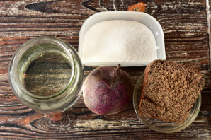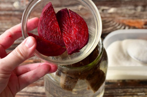 Очистите свеклу, нарежьте ее крупными кусками и добавьте к предыдущим ингредиентам. Очень хорошо перемешайте все ложкой, сахар должен раствориться полностью.