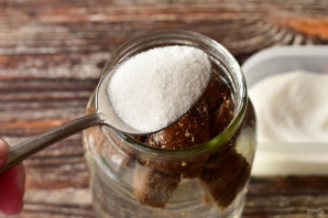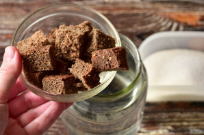 В фильтрованную воду выложите черный хлеб, который предварительно нарежьте на кусочки.